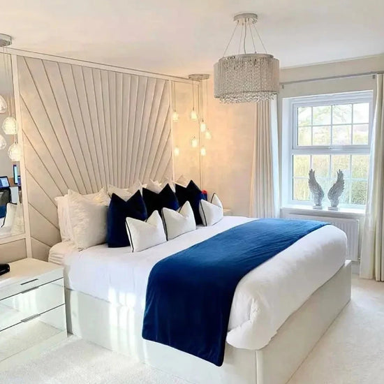 The Melbourne Bespoke Bed is the ultimate statement piece for any bedroom. Featuring a stunning 7ft statement piece headboard with elegant design lines, this bed is sure to impress. But what really sets it apart is the fact that it can be customised to suit your unique preferences and tastes. Available in a wide range of fabrics, including soft velvet, linen, and crushed velvet, and in sizes ranging from super king to double, this bed can be tailored to fit perfectly into any space.