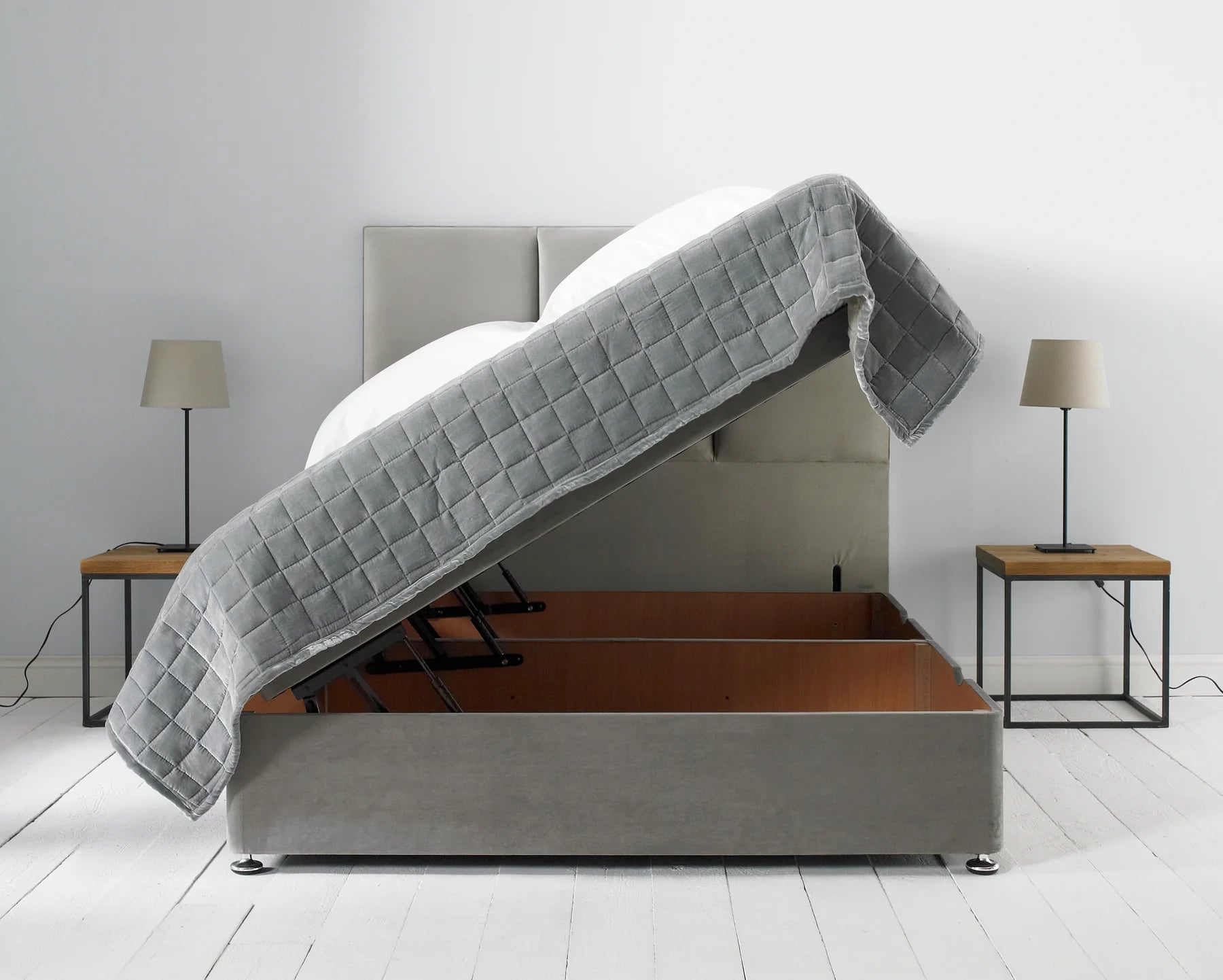 The 3 Panel Divan Ottoman Bed with Headboard is the perfect addition to any modern bedroom. With its sleek and stylish design, this bed frame is sure to make a statement in your room. Handcrafted by the skilled artisans at the British Bed Store, this bed frame is available in a range of sizes from single to super king, and a variety of colours and fabrics including soft velvet, linen, and crushed velvet.