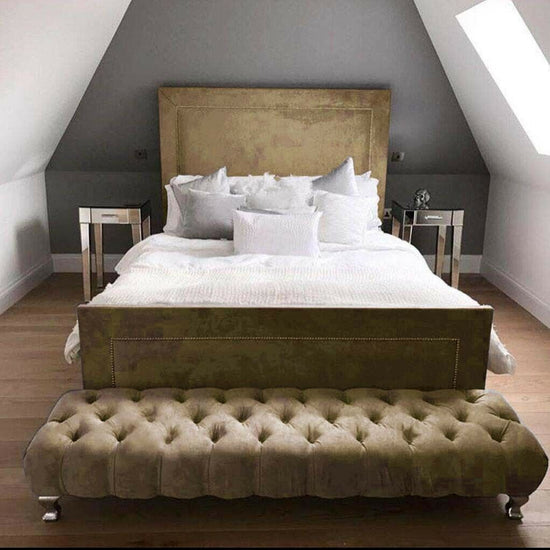 Elegant Silver Studs: Beautiful silver studs adorn both the headboard and footboard, creating a detailed and eye-catching pattern that adds a touch of opulence to your bed.