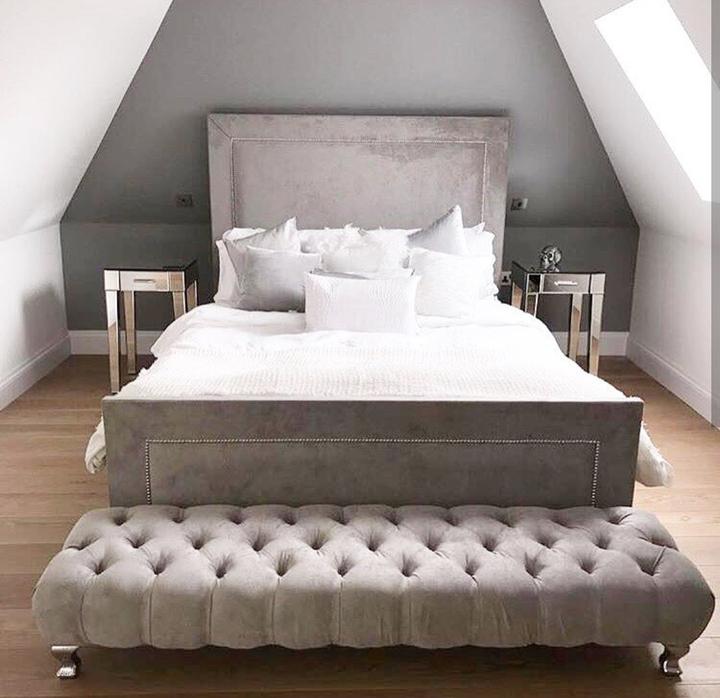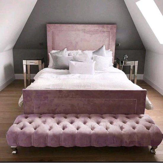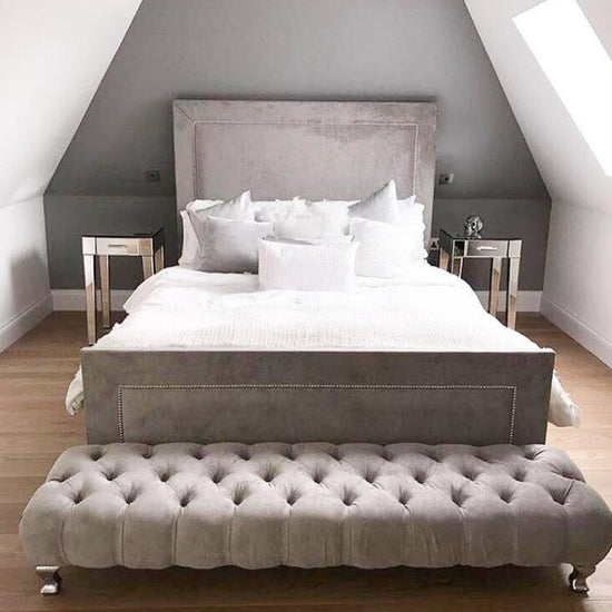 The Calvin Bed Frame is a remarkable and versatile addition to any bedroom, seamlessly blending modern and traditional aesthetics. With generous padding for comfort and a classic headboard design, it's a statement piece that exudes sophistication. Beautiful silver studs create an intricate pattern on both the headboard and footboard, adding a touch of luxury to your sleeping space.