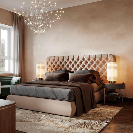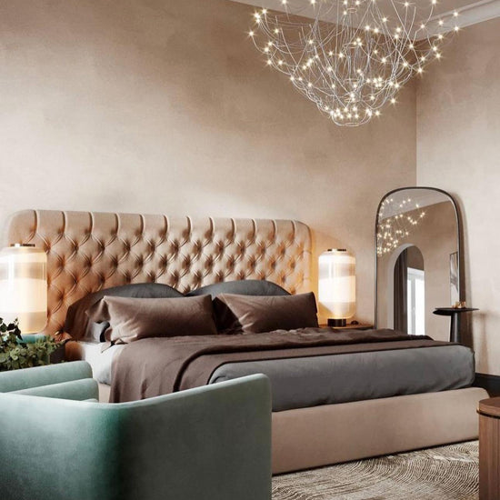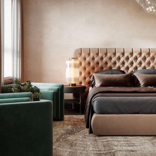 - Wide chesterfield headboard for an elegant and stylish look