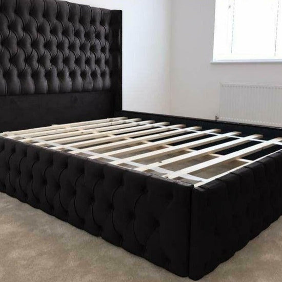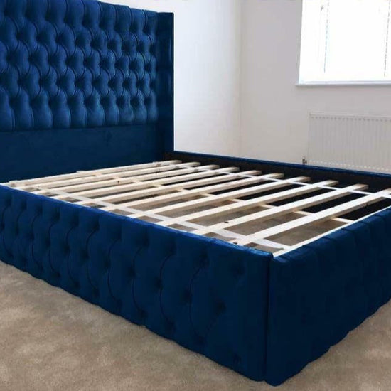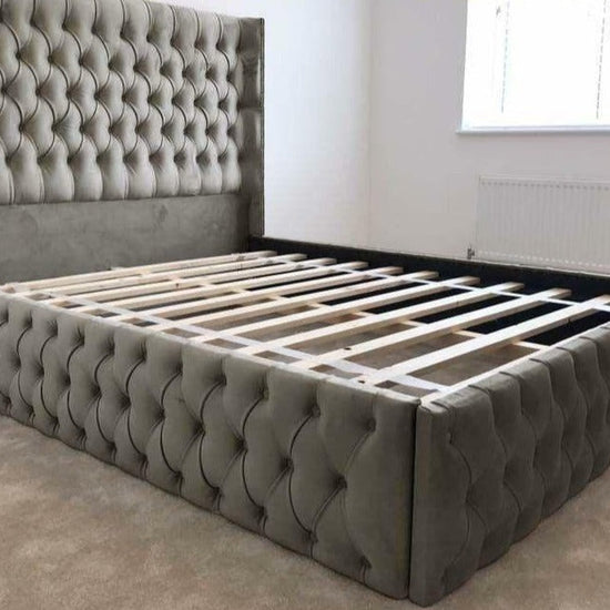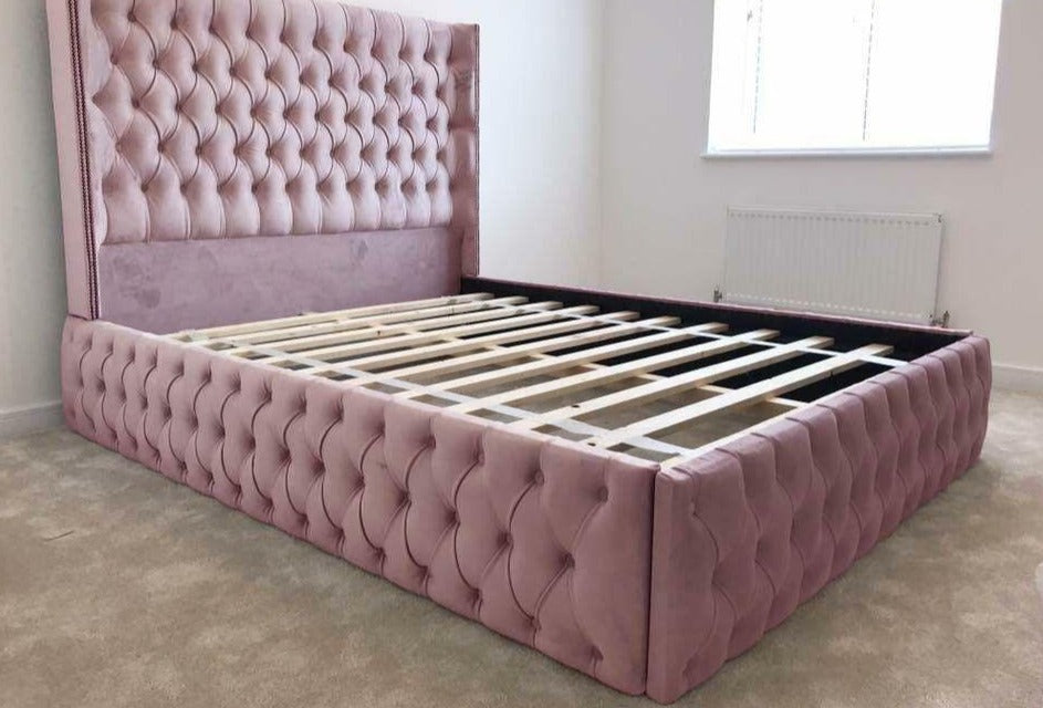 The Tokyo Bed is a true masterpiece of design and craftsmanship, seamlessly blending classic elements with modern luxury. Its striking features include a beautifully winged studded headboard and a lavish chesterfield design that exudes opulence. This bed is not just a piece of furniture; it's a statement of refined taste.