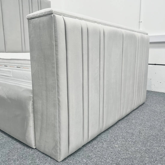 The Milan TV Bed is a stylish and functional piece of furniture that combines the comfort of a luxurious bed with the convenience of a TV stand. It is available in a variety of colours and fabrics, allowing you to choose the perfect match for your bedroom décor.