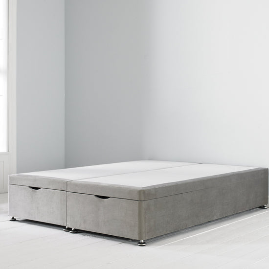 The Premium End Lift Ottoman Storage Divan Base comes complete with linking bolts to join the two base parts together securely. Stylish chrome effect glider feet add a touch of elegance to the base's design. The side lift ottoman is supplied with 2" spacer blocks, positioning the headboard away from the base to allow the lid/mattress to rise without impacting the headboard.